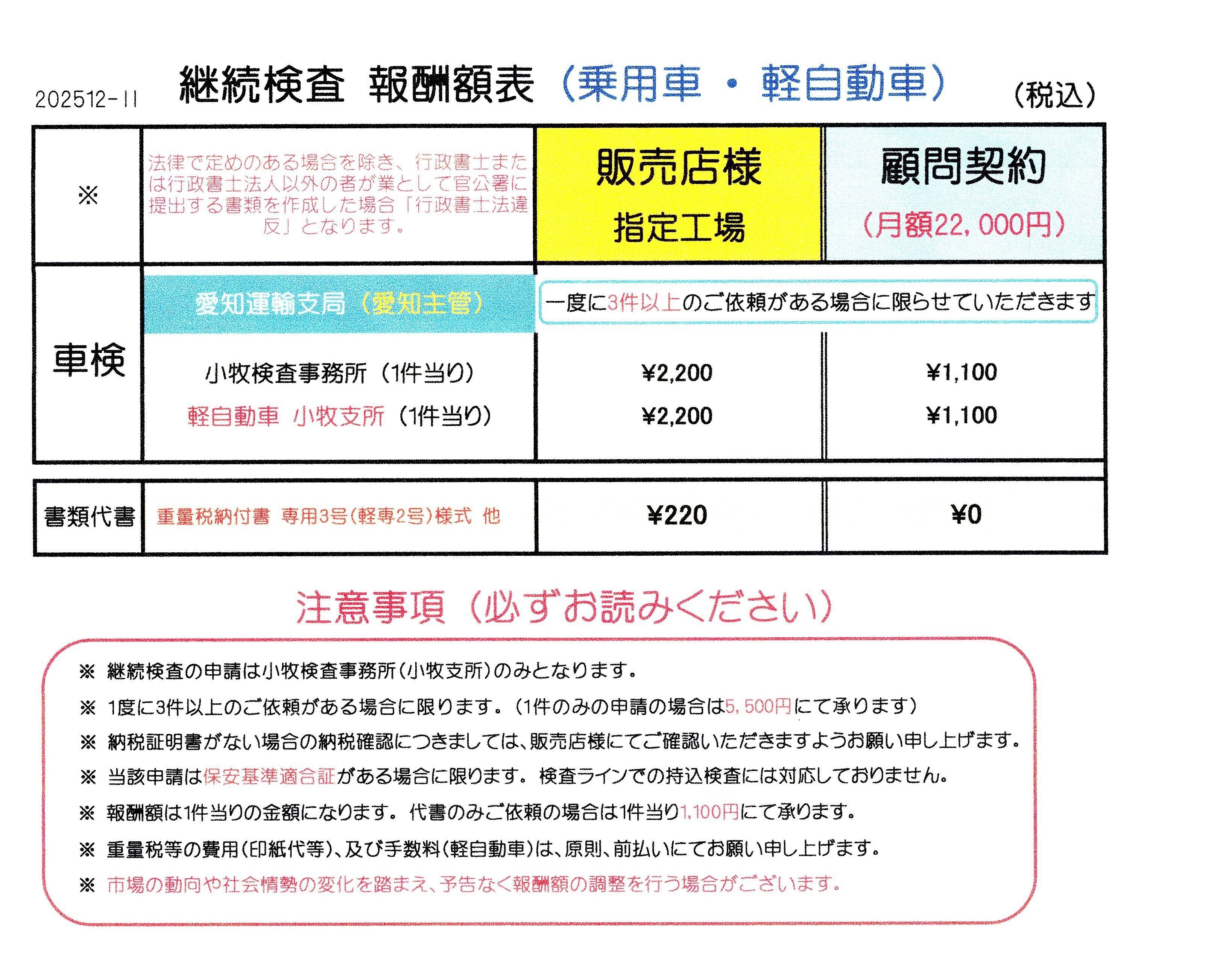 継続検査申請 料金