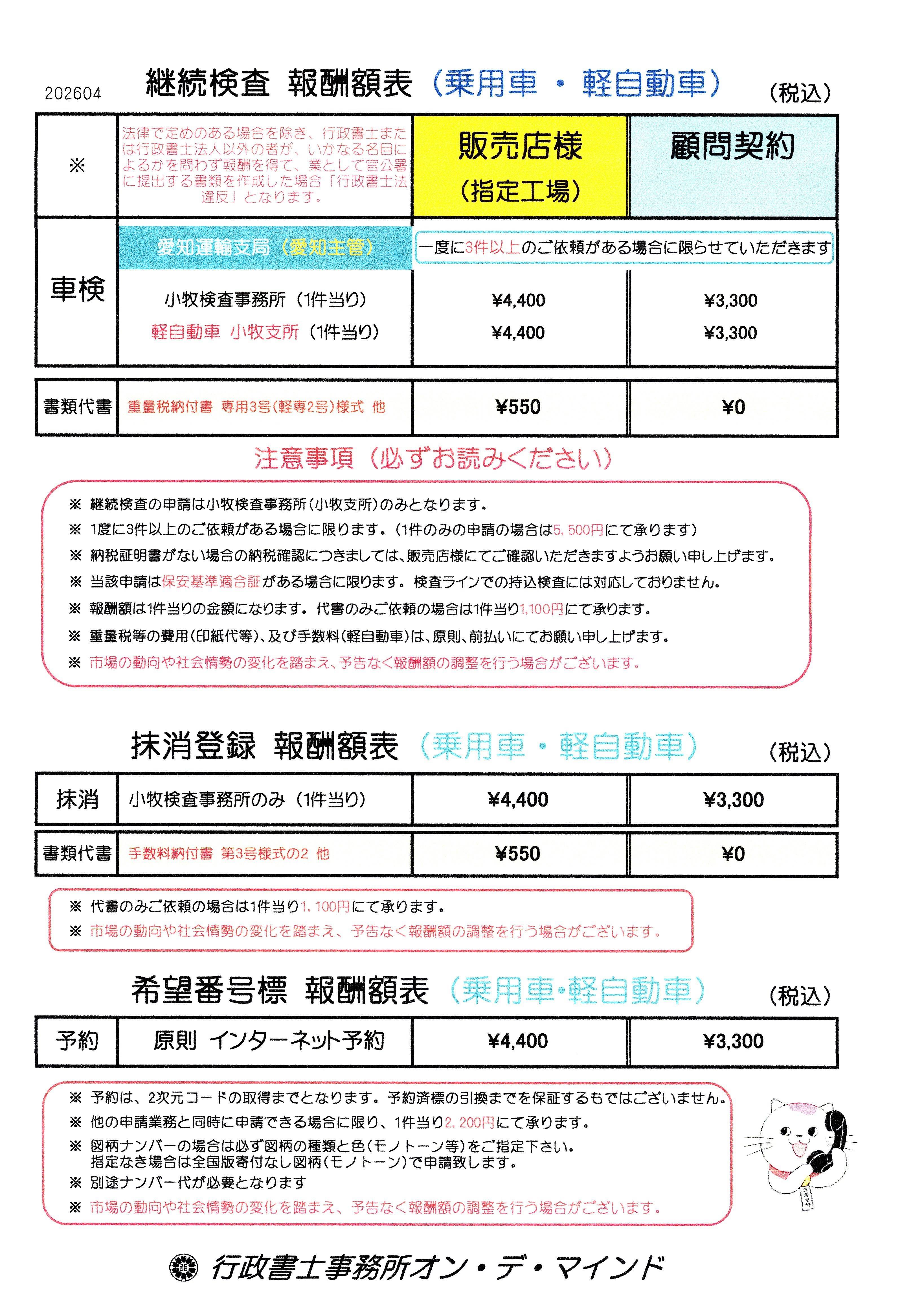 登録・名義変更 料金