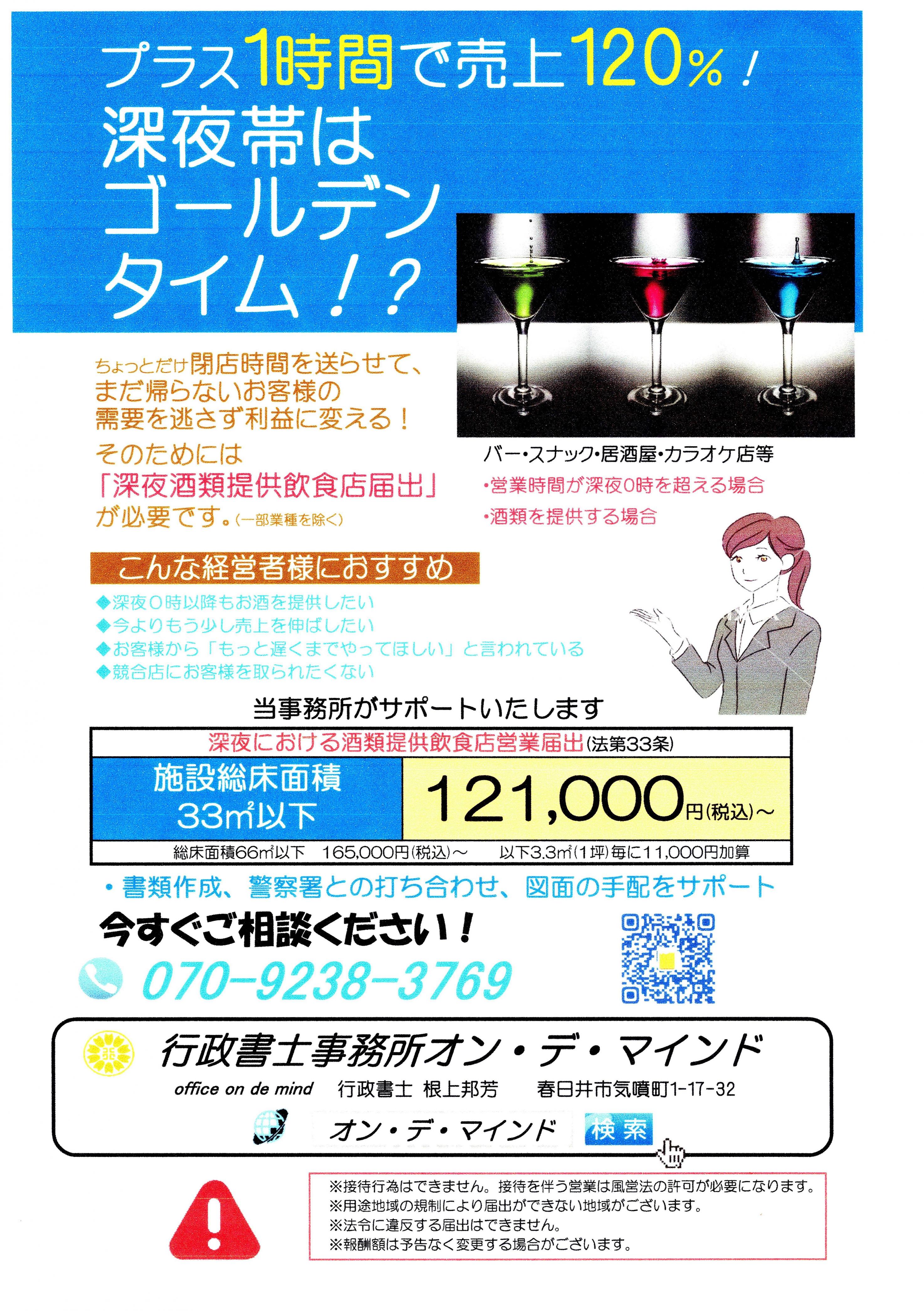 深夜酒類提供飲食店営業届 121,000円(税込)~