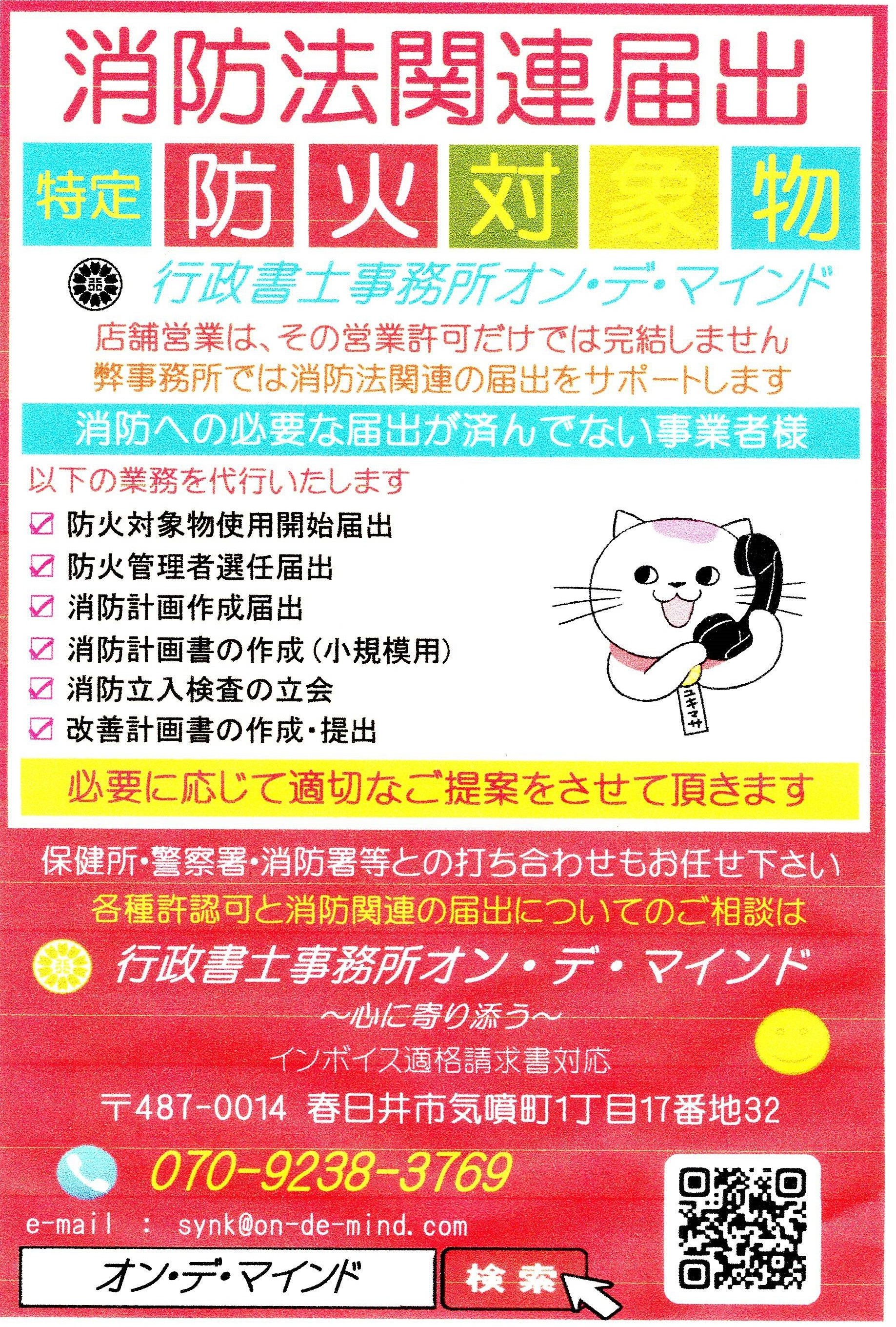 ・行政書士に委任する場合は「消防への届出について対応できるか?」を必ず確認する