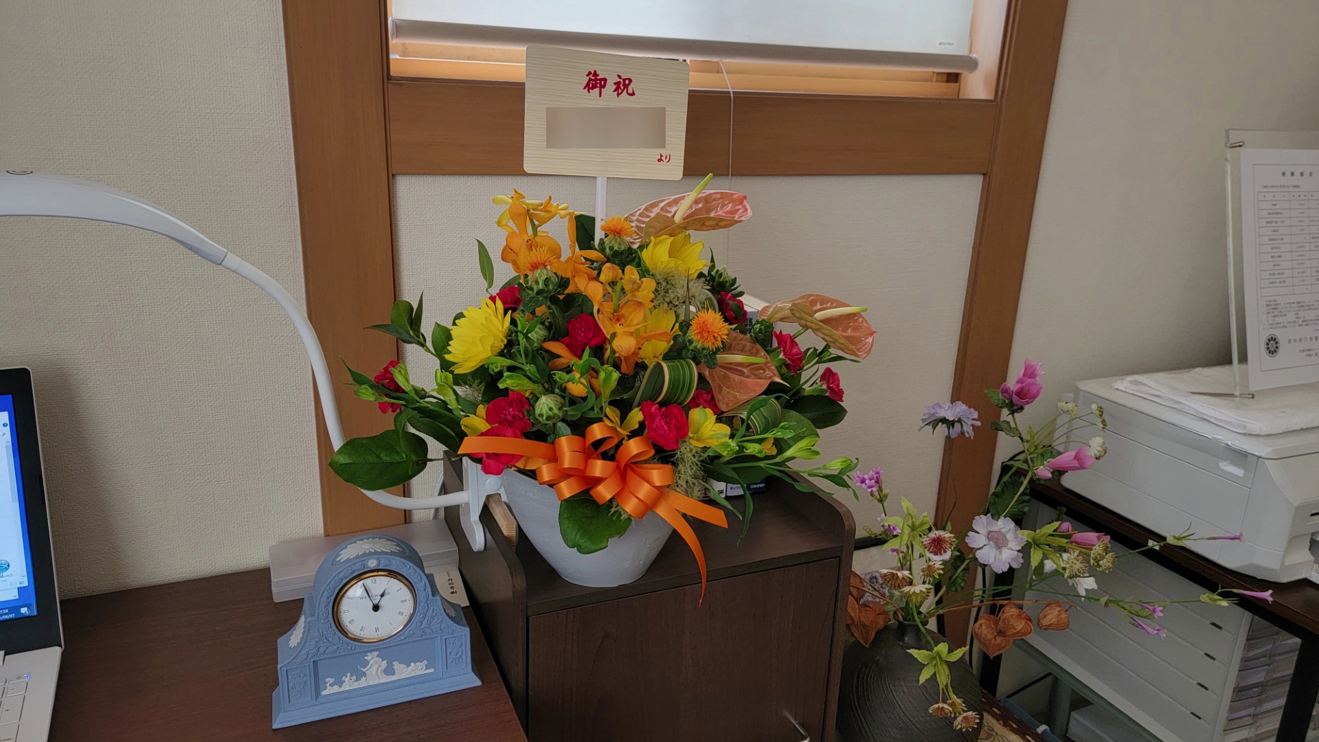 有限会社M社様のK社長様からお祝いのお花を頂きました。K社長、いつもありがとうございます。 何かありましたらいつでもご相談下さい。今後とも宜しくお願い申し上げます。 ![]() |